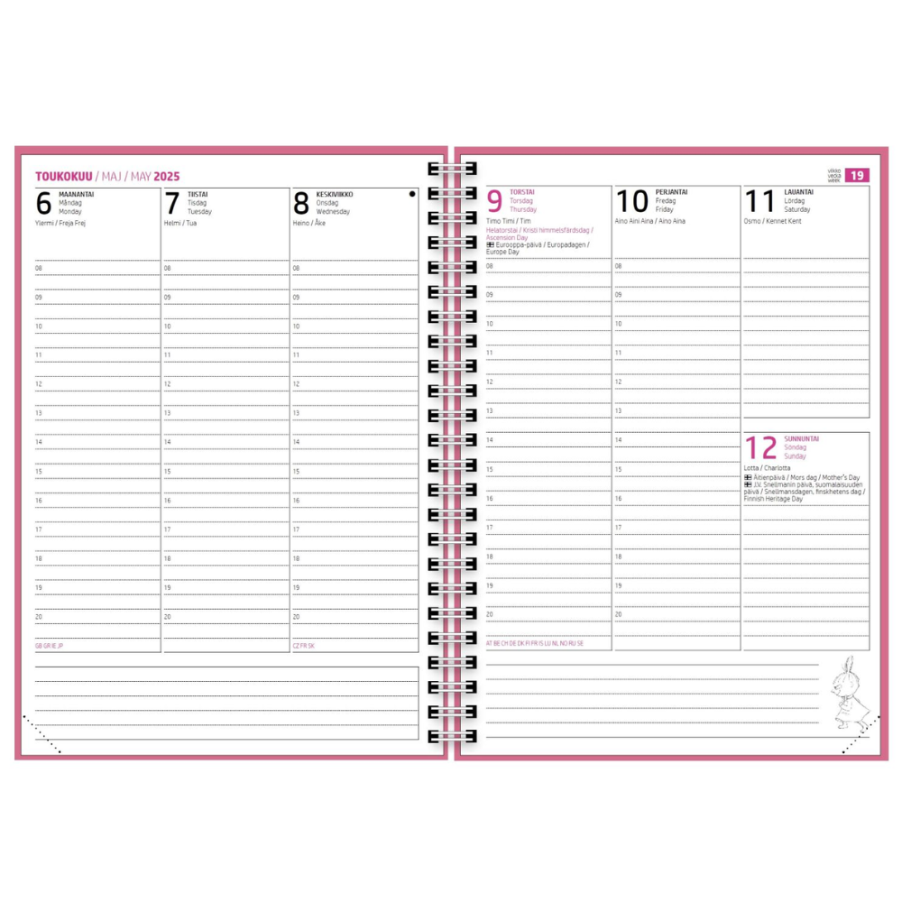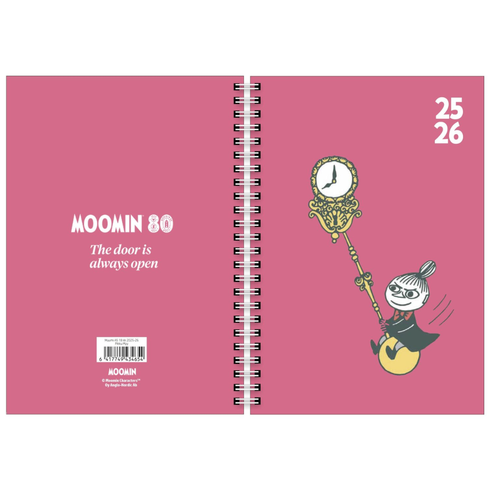Celebrate Moomin's 80th anniversary and keep your life organized with this playful Moomin academic planner! Featuring a Little My illustration, this A5-sized planner covers a full 18 months (July 2025 – December 2026), offering ample space for students and planning enthusiasts alike. The spiral-bound design and durable cardboard covers ensure longevity, and the weekly view makes schedule management easy. The planner is trilingual (Finnish, Swedish, English) and includes plenty of extra pages: annual planning, timetables, exam result pages, a name day list, to-do lists, and extensive note-taking space with ruled and squared layouts. Other Moomin characters also appear on the inside pages. Made from environmentally friendly FSC Mix certified paper. The perfect companion for the upcoming academic years!
