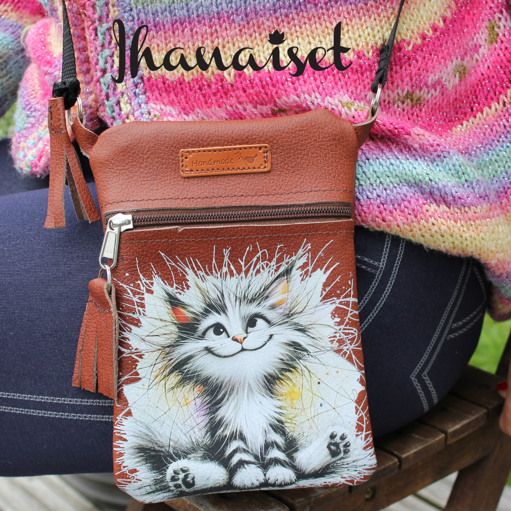 Fall in love with this charming, domestically crafted leather bag that brings a touch of joy and personality to your everyday life. Adorned with a delightful Fluffy Cat design, this bag is the perfect companion for a woman who appreciates the beauty of handmade craftsmanship and a little twinkle in her eye. Made from high-quality leather, the bag feels pleasant to the touch and is built to last. Its practical size is ideal for your phone, keys, and other small essentials you need to grab quickly. The adjustable strap ensures a comfortable fit, whether you're heading to a cafe or out on the town. Please note that each bag is meticulously handmade by a seamstress, so there may be small, charming variations between models, making your bag truly unique.