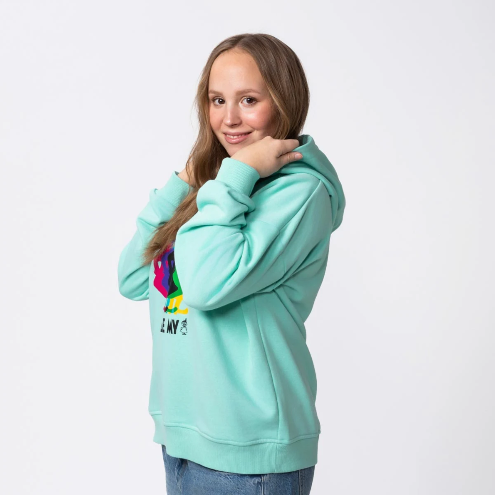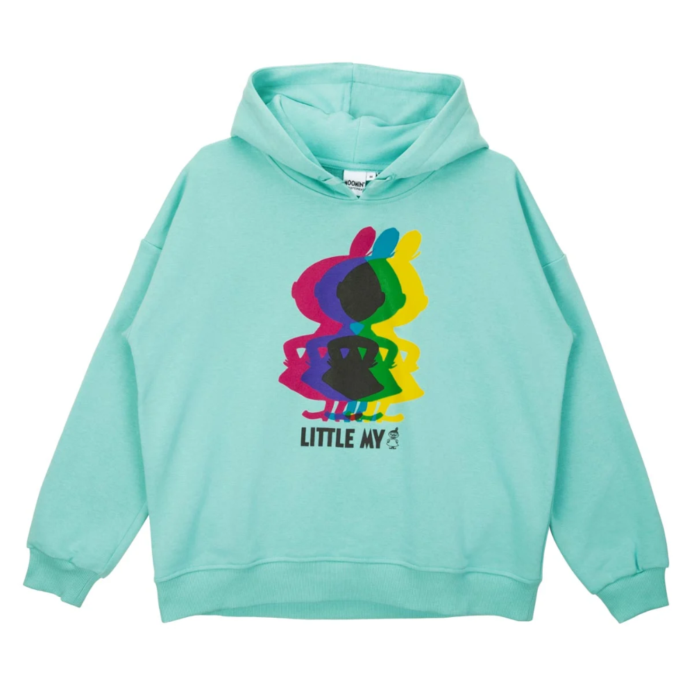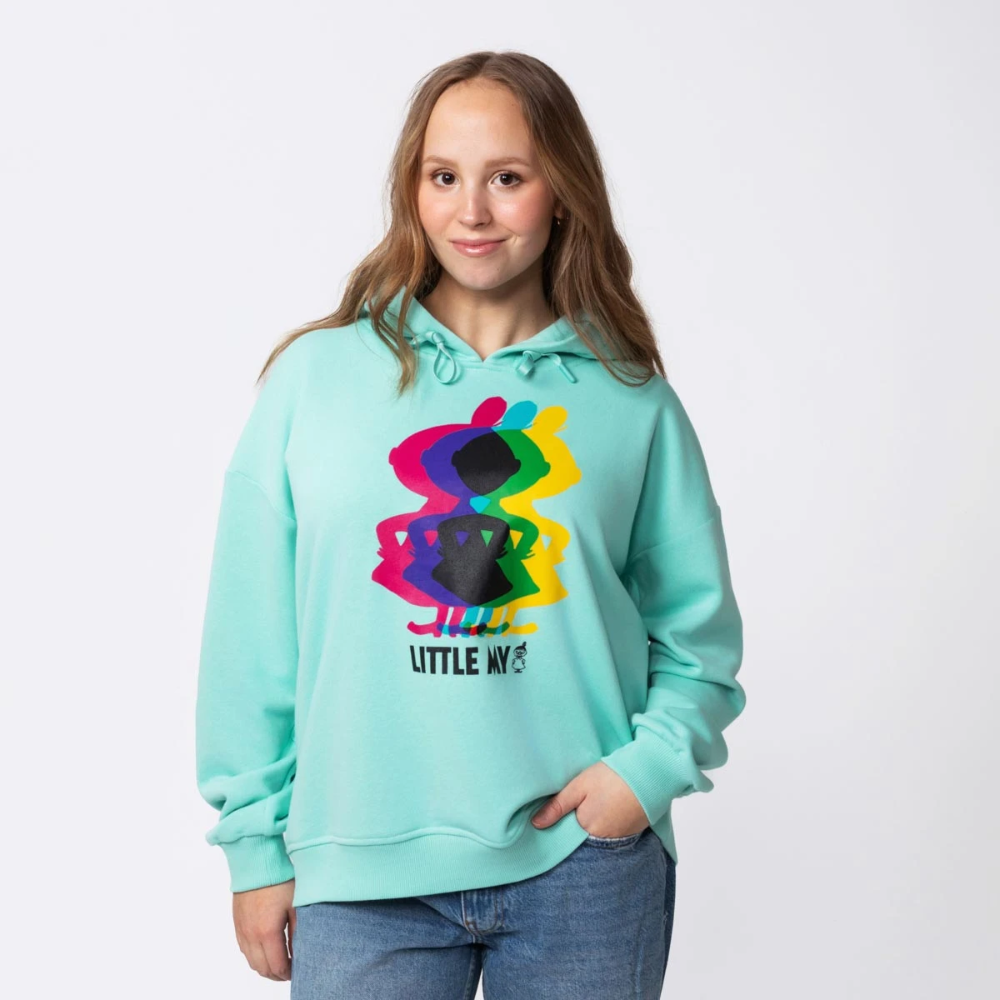 The charming mint green Martinex Moomin Salla Hoodie is the perfect choice for you if you're looking for relaxed comfort and a playful Moomin spirit in your wardrobe! This women's long-sleeved hoodie captivates with its comfortably relaxed and loose fit, suitable for various body types and offering an effortlessly stylish look. The chest of the hoodie is adorned with a multicoloured, mysterious shadow of Little My's character, bringing a touch of secrecy and recognizable Moomin joy. Long sleeves, a dropped shoulder line, and ribbed hems and cuffs complete this modern and beautifully fitting garment. The light loopback knit on the inside and the pleasant cotton blend material make this hoodie exceptionally soft and comfortable to wear. Manufactured according to Oeko-Tex standards, you can trust its quality and safety. Add relaxed elegance and Moomin-like joy to your outfit!