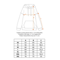 - Other: Long sleeves, dropped shoulder line, long, loose and generous fit, straight hem, ribbed hem and cuffs, lined hood with drawstrings, multicoloured print on chest.