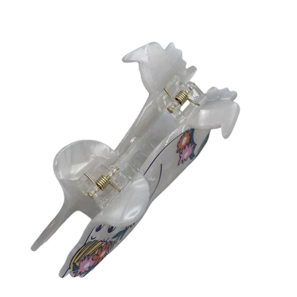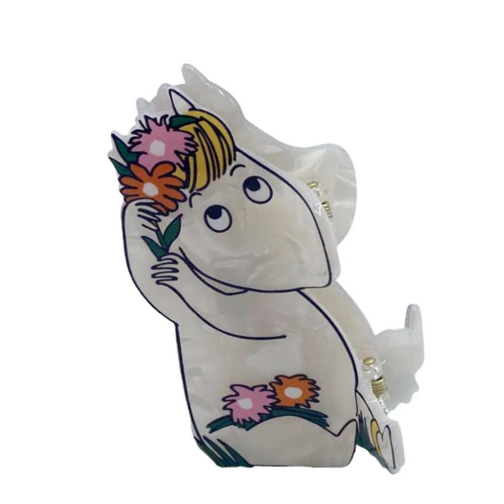 This delightful House of Disaster hair claw is the perfect accessory for all Moomin fans! The clip features Snorkmaiden with flowers in her hair and at her feet. Made from pearlescent acetate, this lightweight and durable hair clip holds hair back beautifully without causing any discomfort. The clip is the perfect addition to any outfit or a wonderful gift idea.