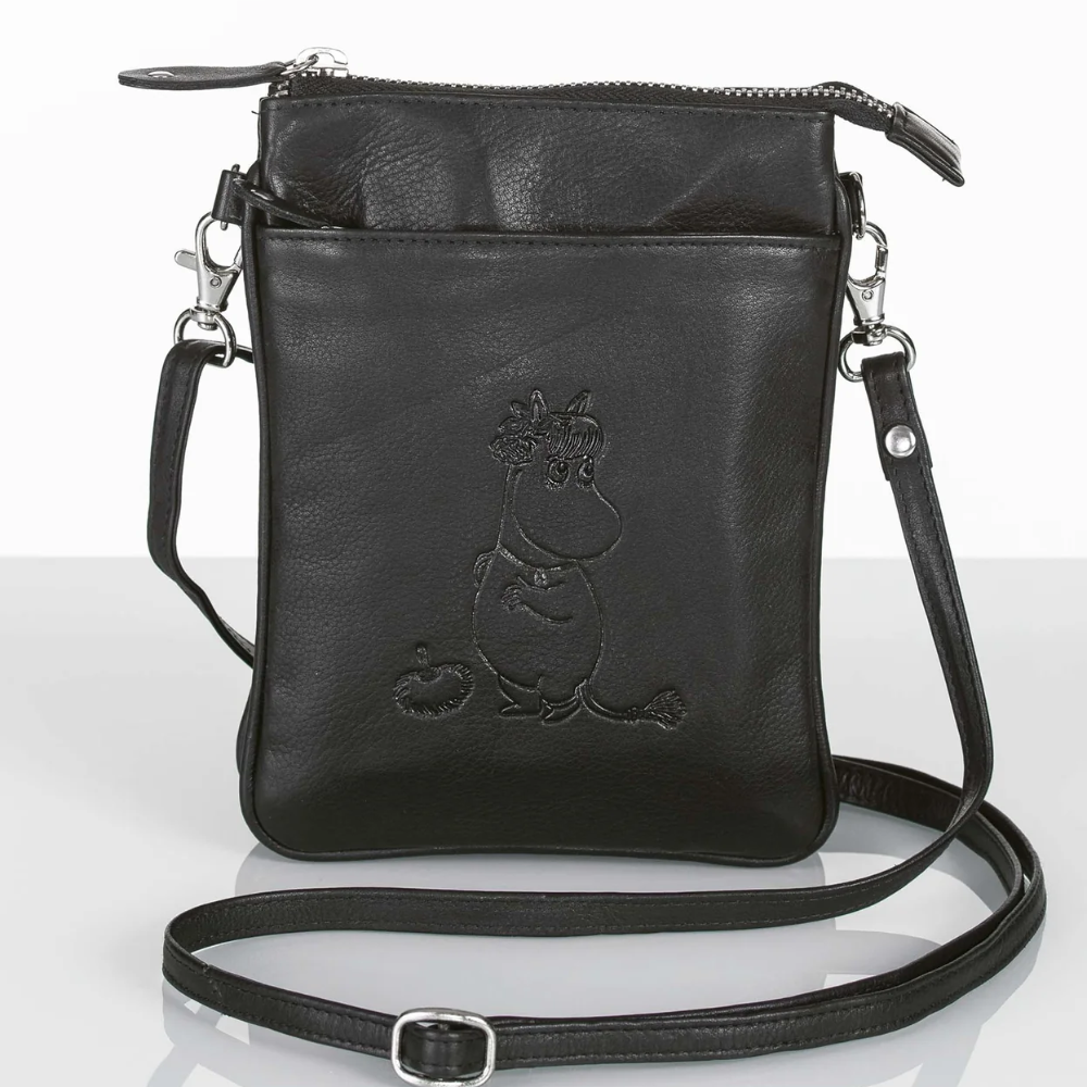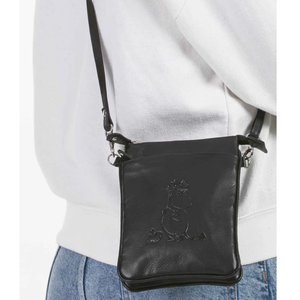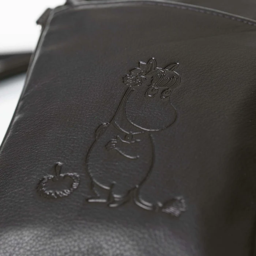 This delightful Lasessor phone wallet is crafted from soft, genuine leather. Its charming design is highlighted by an elegant Snorkmaiden illustration from Tove Jansson's original book. The wallet is both stylish and incredibly versatile, serving as a phone pouch or a small shoulder bag, fitting all your daily essentials. It features a main zippered compartment, four internal pockets (one with a zipper), as well as eight card slots and a wide pocket for receipts.