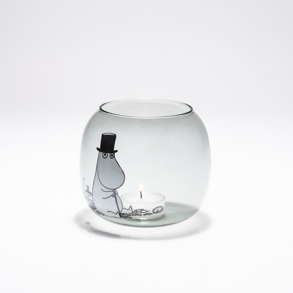 This grey Moominpappa-themed candle lantern is a great addition to any home decor. It's a beautiful tribute to the proud head of the Moomin Valley family, who is always ready for adventures and good advice. This versatile lantern is made from durable borosilicate glass and its uses are almost limitless: it works as a candle holder, a small flower or serving bowl, or for storing small items. The product is designed in Finland and is easy to care for, requiring only hand washing.