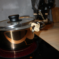 Hang the pot watcher between the pot and the cover so that the hot steam can get out of the gap, and the broth won't boil over. Wonderful for when boiling potatoes, rice etc. Pot watcher will keep watch for you. But please remember safety and never leave a boiling pot unattended.