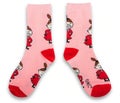 Adorable light pink Little My socks with bright red color on the heel and toes!