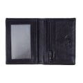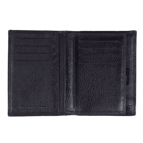 Stylish black leather wallet. On the wallet there's a picture of Moominpappa. Inside there's plenty of space for bank notes and cards.