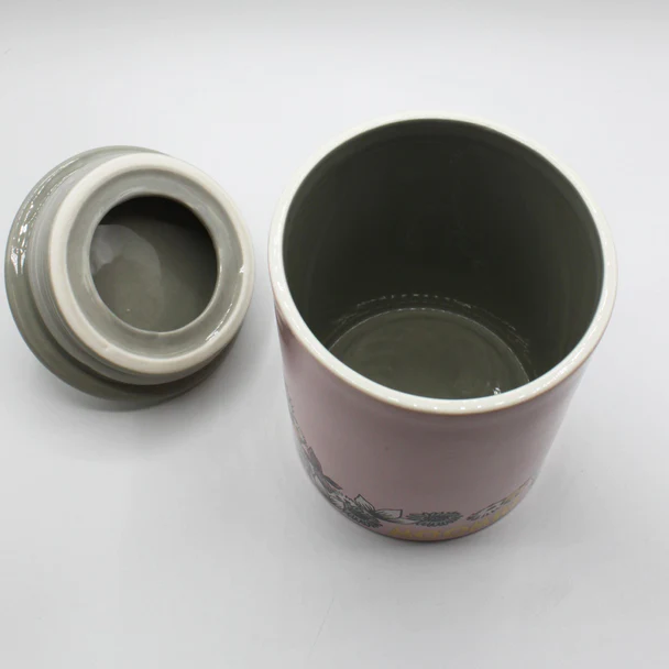 Lovely ceramic jar with a lid and gorgeous Moomin theme. On the container you can see Moomintroll and Snorkmaiden hugging each other.